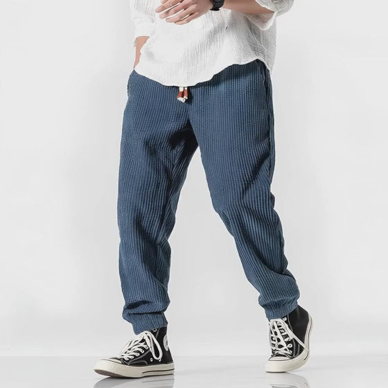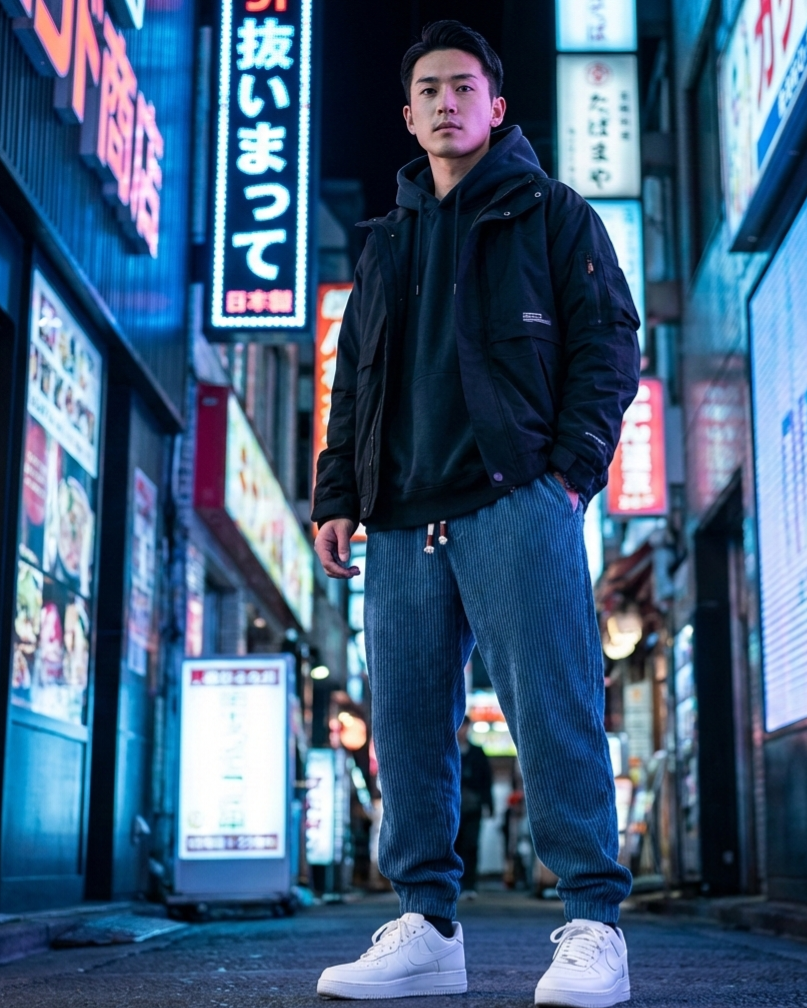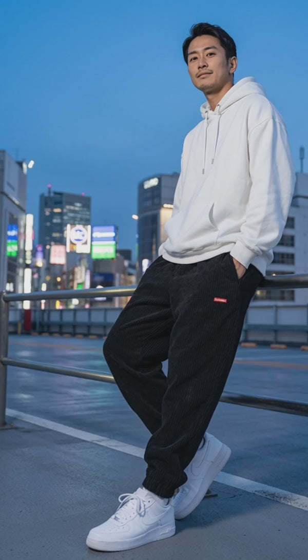 Les designers japonais ont réinventé le velours côtelé avec des coupes amples inspirées du vestiaire urbain de Tokyo. Ce pantalon mêle la douceur du velours au style streetwear japonais contemporain. Adoptez un look distinct avec les trois coloris disponibles — bleu, noir ou camel.