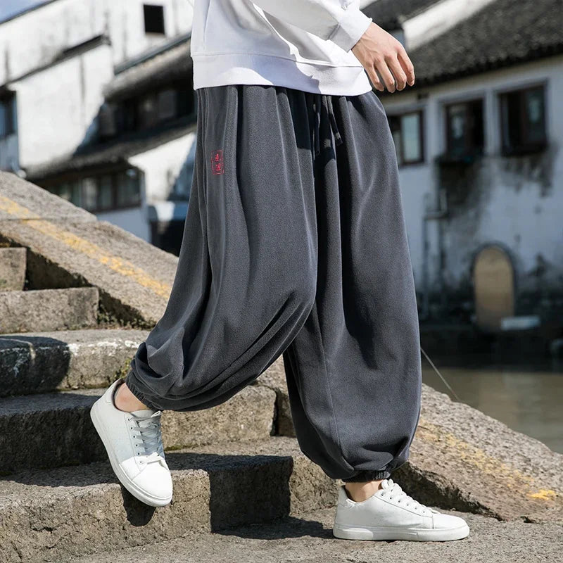 Décliné en Gris, Noir, ce pantalon se glisse dans le quotidien comme une habitude heureuse. Sa coupe ample offre une liberté de mouvement qui rappelle le confort des vêtements traditionnels japonais, tandis que sa taille élastique s'adapte à chaque morphologie avec discrétion.